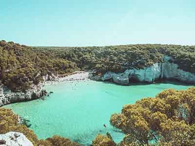 Rivaliza en belleza con Cala Macarella, a menos de dos kilómetros de distancia de Cala’n Turqueta. En sus acantilados hay cuevas prehistóricas y el azul intenso de sus aguas bien podría compararse a una playa del Caribe. Junto a ella, hallarás Cala Macarelleta, de menor tamaño y perfecta para pasar un apacible día si buscas un espacio nudista.