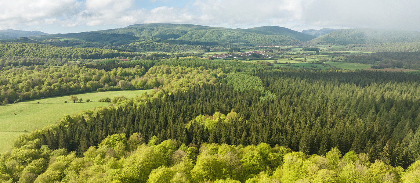 A nivel de flora, destacan las hayas y los abetos: predomina el haya común y el abeto blanco. Se dan otras especies asociadas a zonas de humedad y al sotobosque tales como el abedul, tejo, el acebo, el arce, tilo, la zarzamora, la seta, el serbal… También hay robles, sauces, helechos o musgos.