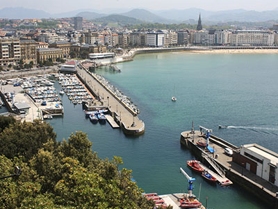 El largo y majestuoso paseo marítimo de la Concha desemboca, por el extremo oriental de la playa homónima, en el conocido puerto de San Sebastián, cuya construcción se inició a principios del siglo XV. Se encuentra en una situación privilegiada, al pie de la estatua del Sagrado Corazón que corona al monte Urgull. En el centro de la bahía se encuentra la isla de Santa Clara.