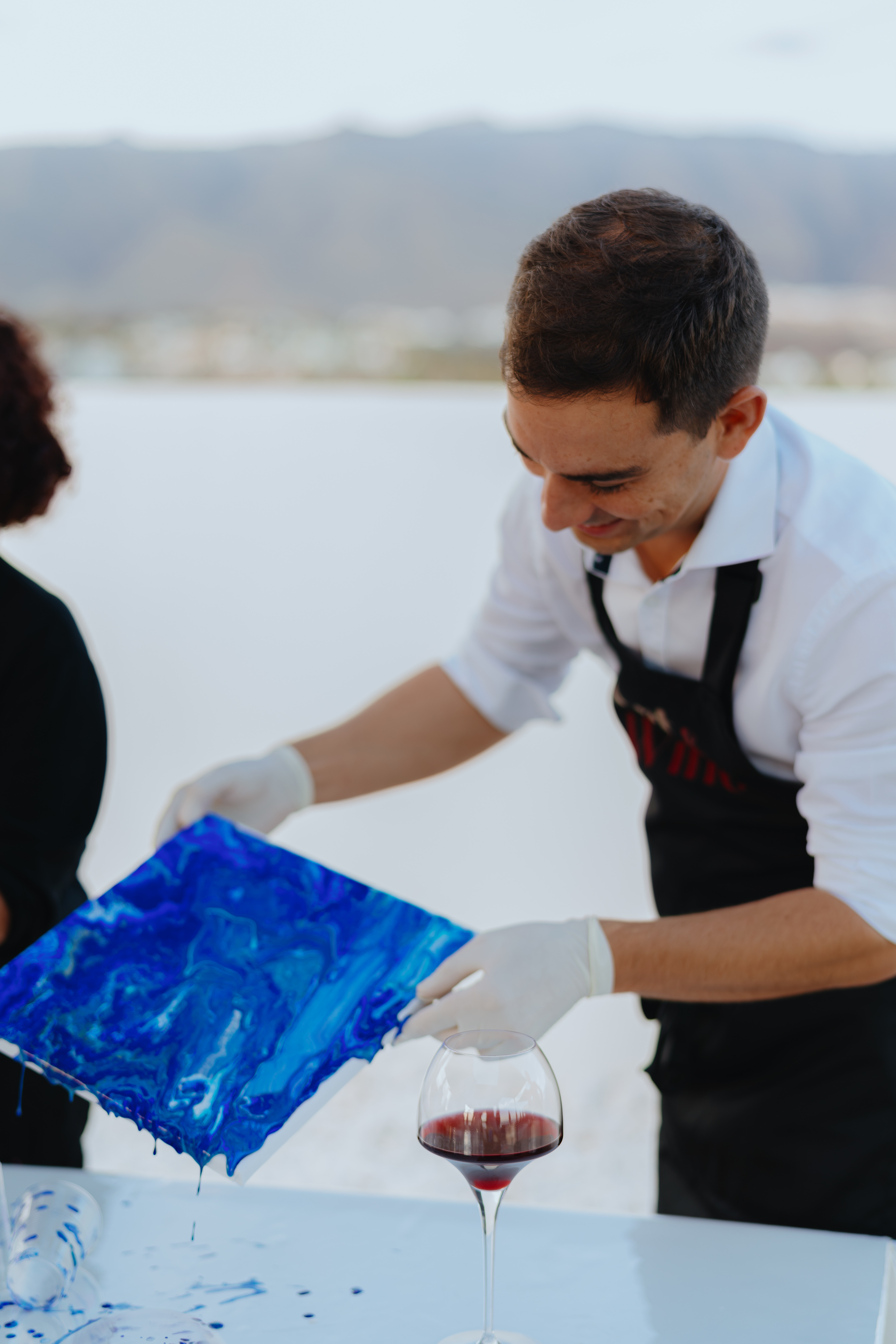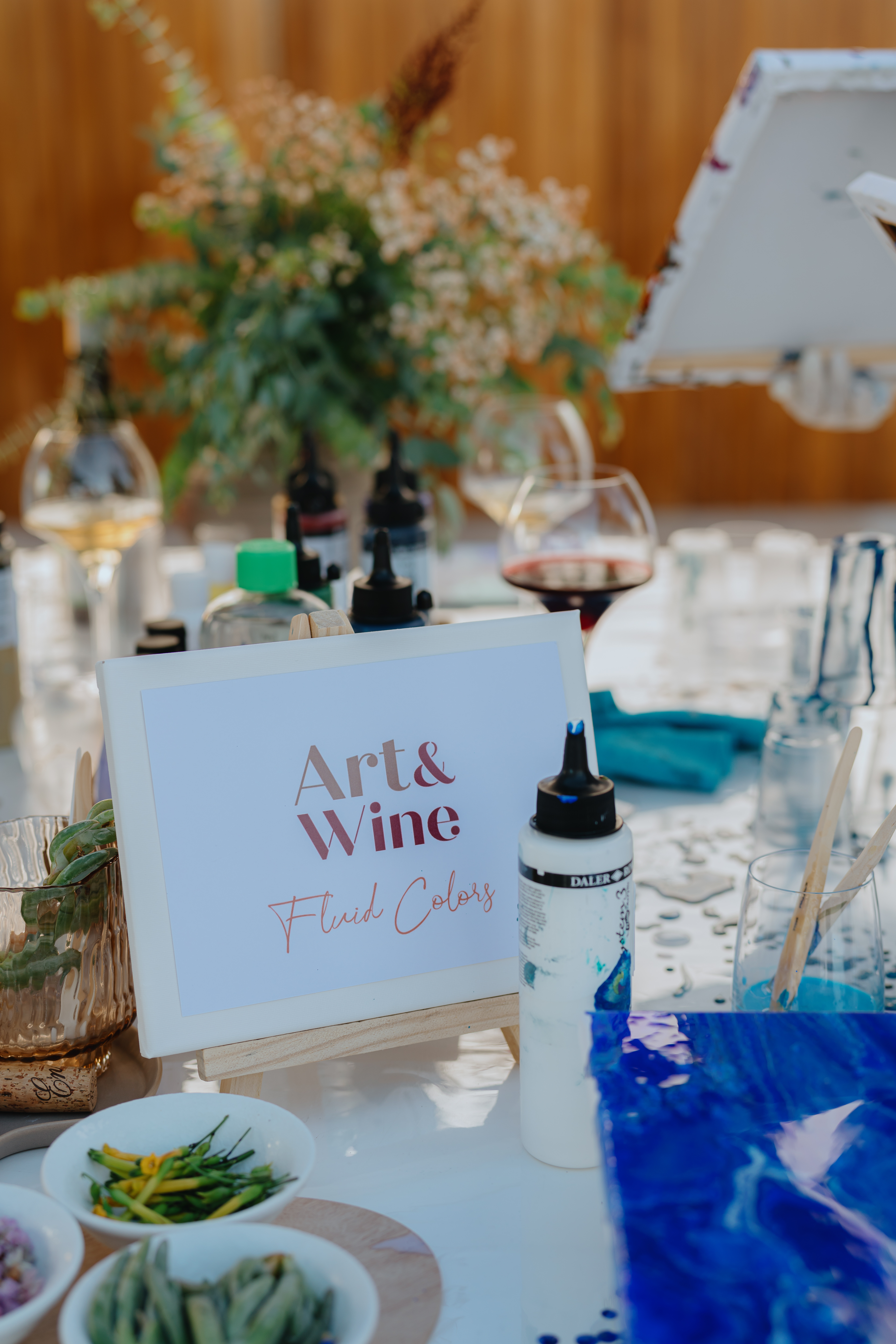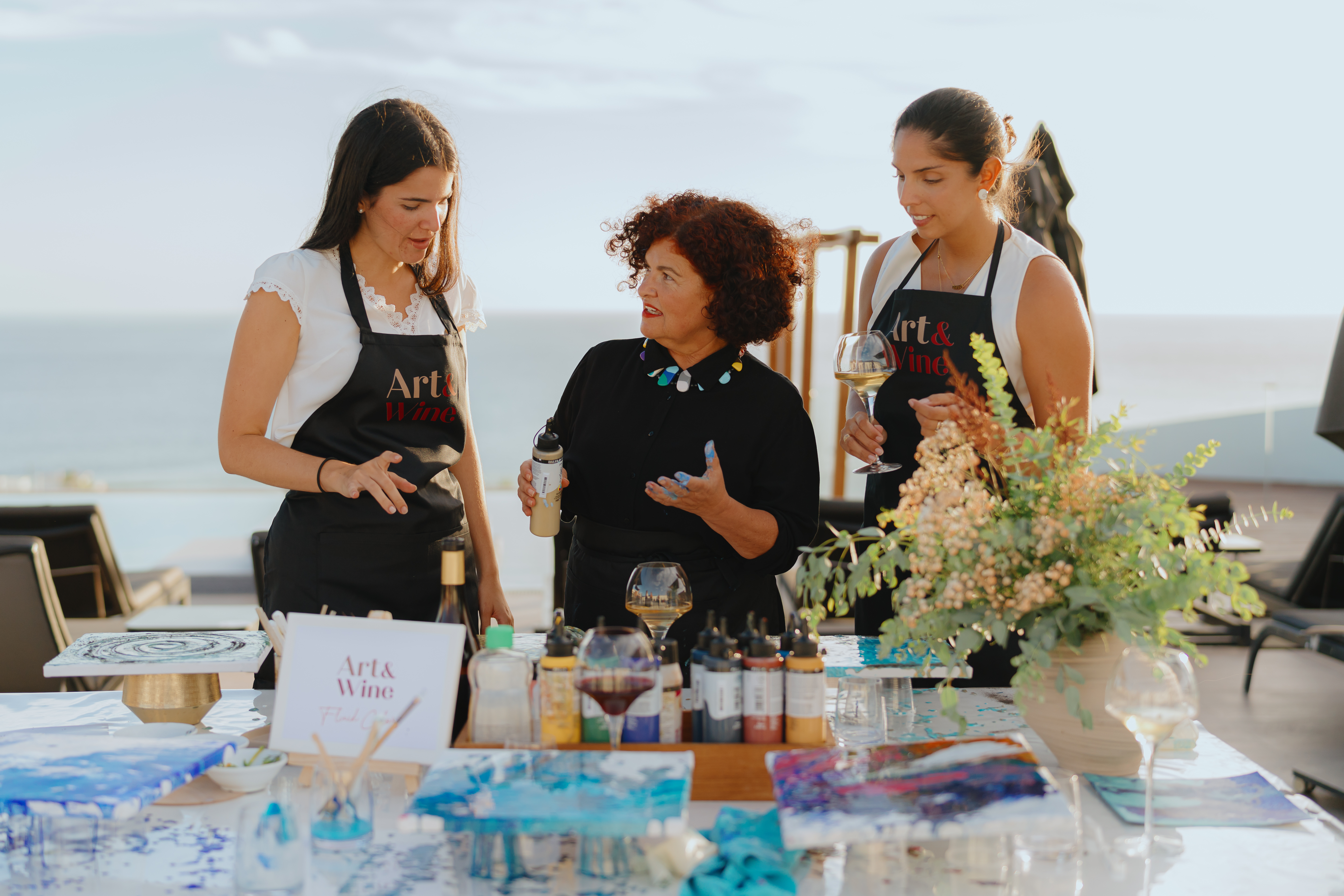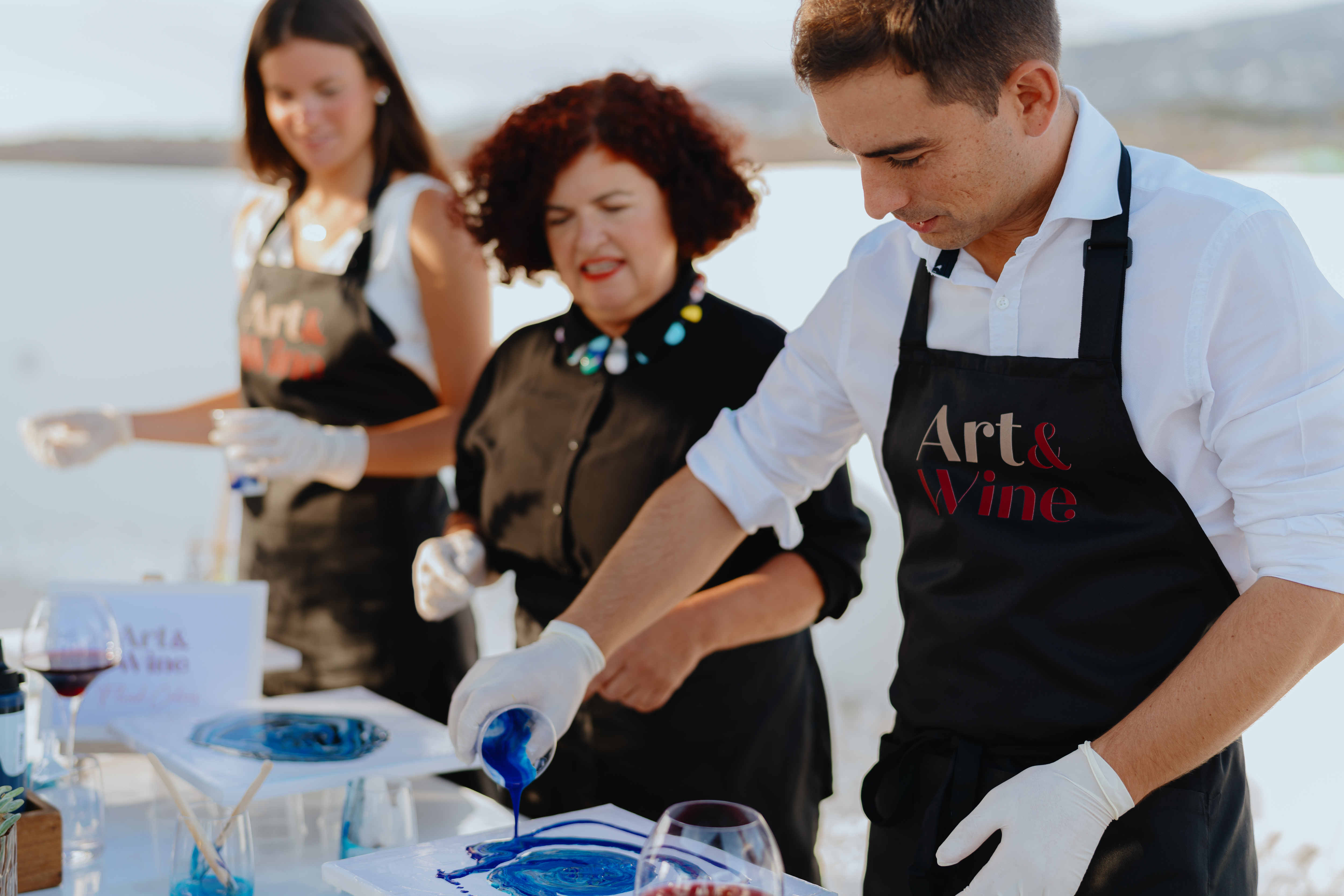 Art & Wine comienza con una cata de vinos seleccionados que corresponden con el tema elegido. Durante esta fase, exploramos los aromas, las variedades de uvas y los terroirs de las Islas Canarias, lo que nos inspira para la siguiente fase artística. Tras la cata, nos sumergimos en un taller de Fluid Art, donde podrás liberar tu creatividad.