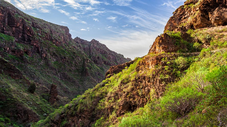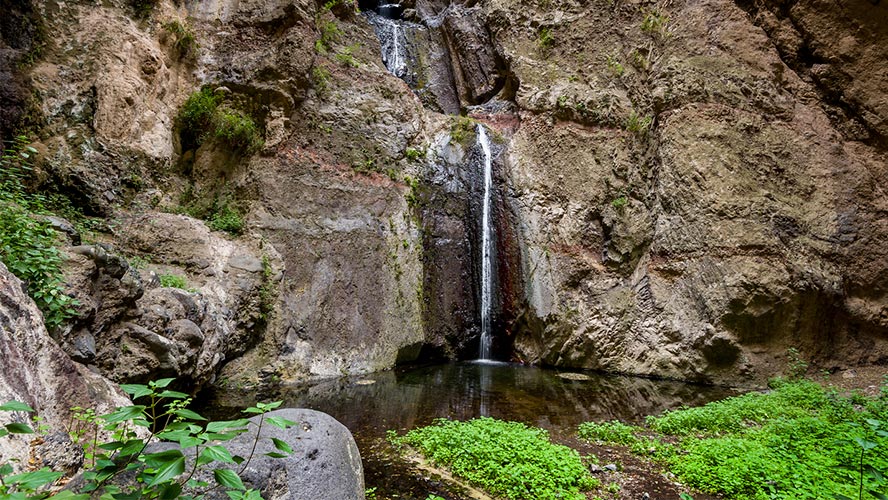La Reserva Natural Especial del Barranco del Infierno tiene 1.843 hectáreas jalonadas por barrancos y por elevaciones rocosas muy escarpadas que en Canarias se denominan roques y que pueden encontrarse tanto en la tierra como en el mar. Tiene una altitud que va de los 100 metros a los 1.300 y son muchos sus secretos, porque esconde en sus entrañas sorpresas naturales y hermosas cascadas que surgen con naturalidad entre sus cursos de agua. Por esta razón, podemos encontrar una vegetación extraordinaria en la que abundan los sauces y otras especies autóctonas y exclusivas del archipiélago canario, como el drago o el marmulán, una reliquia de la flora tropical de la Era Terciaria. También hay palmeras, jazmines silvestres y, por supuesto, el característico pino canario en las zonas más altas de la reserva.