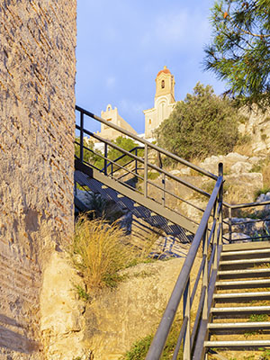 El santuario de la Virgen del Castillo es la segunda visita obligada en Cullera, y se sitúa junto a la fortaleza anterior. Este pequeño templo fue construido a finales del siglo XIX (entre 1891 y 1897) en estilo neobizantino, y en su fachada llama la atención la torre de las campanas que tiene una pequeña cúpula que brilla debido a sus tejas vidriadas. Debes fijarte en el vestíbulo del santuario porque se ha colocado un colección de retablos cerámicos de la vieja ermita donde se muestran los milagros de la virgen. En el interior lo más llamativo es el camarín dorado con el trono y la imagen de la virgen del siglo XV. La entrada es gratuita así que no pierdes nada por acercarte a ver el santuario.