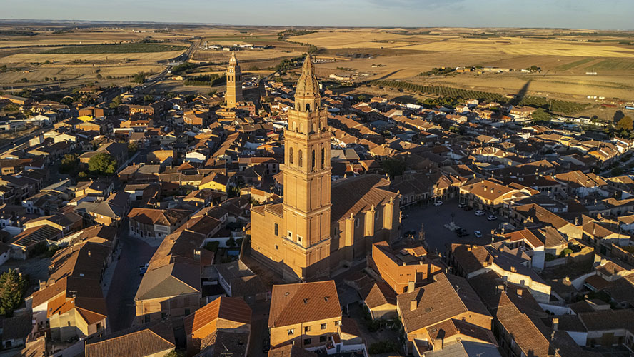 Las más conocidas son San Pedro y Santa María, dos templos que combinan elementos renacentistas y barrocos con estructuras de tradición mudéjar. Sus torres dominan el perfil urbano del pueblo, visible desde los campos de cereal que rodean la localidad.