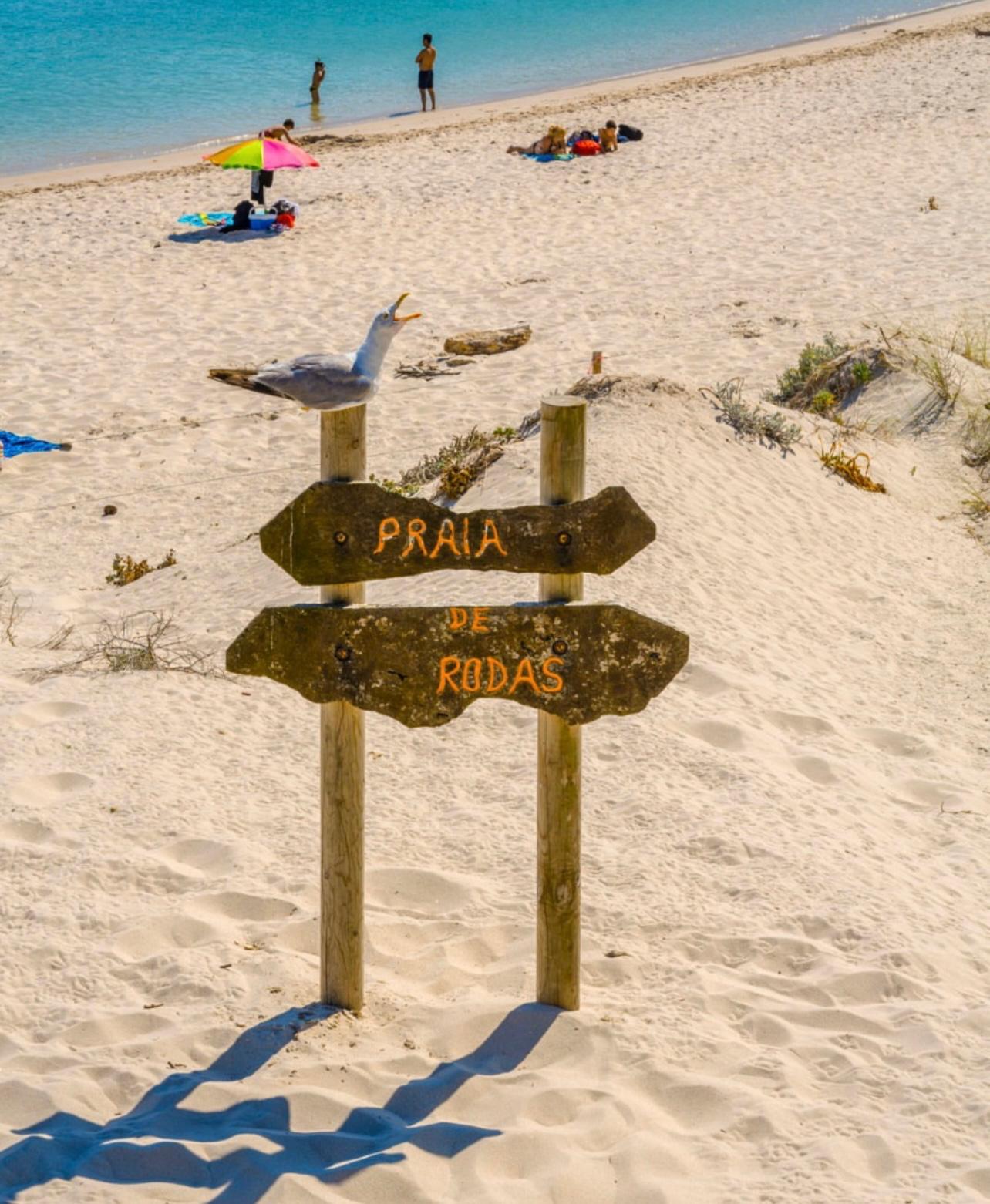 Por la tarde, navegamos hasta la Playa de Rodas, donde recomendamos bajar y visitar la isla ya que tiene diferentes rutas de senderismo con espectaculares vistas y donde poder admirar alguno de sus parajes más bellos que os llevan hasta los icónicos faros de las islas y desde donde tendréis miradores espléndidos, imágenes de postal que quedarán en el recuerdo para siempre.