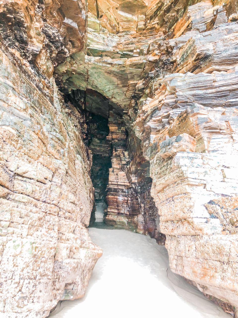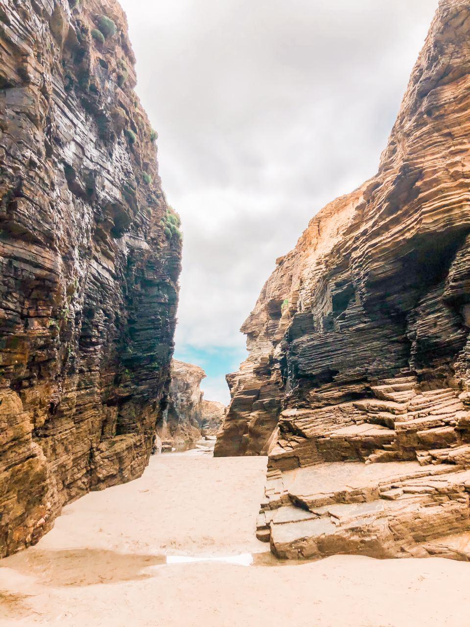 Finalmente, llegamos a la espectacular Playa de las Catedrales, oficialmente conocida como Playa de Aguas Santas. Este enclave natural es un regalo único de la naturaleza, famoso por sus: