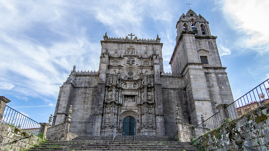 En el lugar donde hoy se levanta imponente “esta perla del arte gallego», como se la conoce muchas veces, había una antigua iglesia que fue derribada para construir una fachada principal ideada como un retablo gigante, sobre unas escaleras de piedra que confirman la perfección de la arquitectura renacentista en la zona.