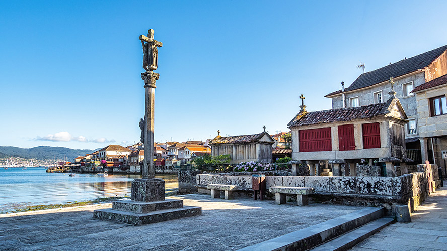 El llamado pueblo de los hórreos, Combarro, está considerado uno de los más bonitos de Galicia y de España en todas las listas que se hacen sobre el tema. Los culpables son, sobre todo, la tira de hórreos que se conservan a la orilla del mar y que, cuando sube la marea, forman una imagen idílica de la ciudad, y los cruceiros, hasta nueve, que jalonan el pueblo de cruces de caminos y de vírgenes que sólo miran hacia el mar para proteger a los marineros.