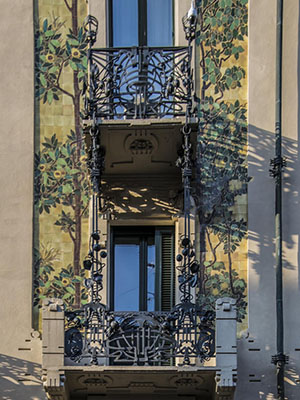 Pero la Casa Galimberti lleva su belleza aun más allá. Las terrazas del primer piso se enmarcan en delicadas columnas, y los balaustres o antepechos de sus balcones, tallados en hormigón, consiguen que este material se suavice en formas ondulantes, ramos florales o bellísimos capiteles. Los balcones de los tres pisos superiores del edificio cuentan, por su parte, con enrejados ornamentales de hierro forjado. Nada ha sido aquí dejado al azar.