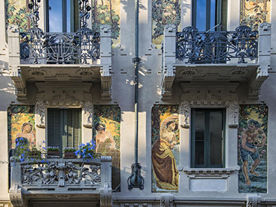 ¿Cómo debe ser vivir dentro de un edificio que es objeto de admiración de visitantes llegados del mundo entero? ¿O salir a la terraza a tomar el aire rodeado de murales y enrejados, de hipnótica belleza? La Casa Galimberti, revestida con azulejos de cerámica pintados al fuego, es un encantador ejemplo del Liberty italiano, el Art Nouveau, el modernismo que en España dio lugar a algunos de los más bellos ejemplos de la arquitectura, en especial de la mano de Antoni Gaudí.