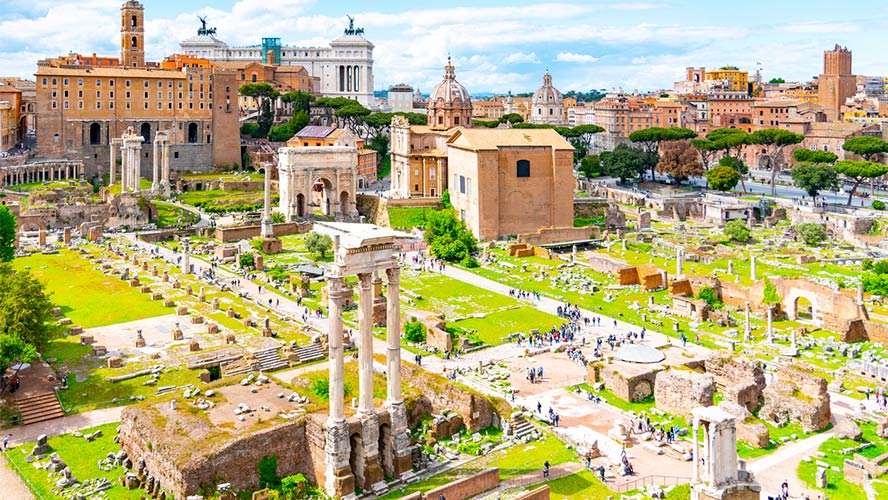¿Qué es el Foro Romano? El Foro Romano fue el corazón del Imperio romano durante más de 10 siglos. Aquí se desarrollaba la vida política, cultural y económica de la antigua Roma. Hoy sólo quedan sus ruinas, pero nos sirven para intuir la gloria que en un pasado vivió la ciudad. Además, constituyen un espacio muy romántico y cautivador, ideal para dar un paseo y adivinar a qué edificios pudieron corresponder los restos que ahora vemos. Y es que el Foro Romano es, junto con el Coliseo Romano, el mayor legado de la grandeza del Imperio de Roma.