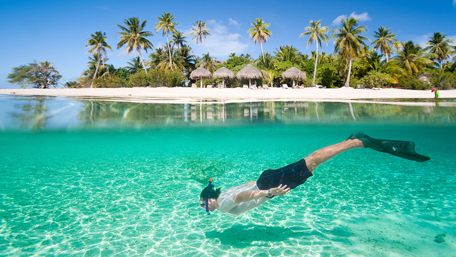 El buceo es uno de los atractivos de la isla que atrae a más turistas. Los expertos aseguran que Maldivas es uno de los mejores lugares del mundo para principiantes y expertos puesto que hay muchas zonas variadas donde hacer inmersión. Los fondos de este archipiélago cuentan con importantes arrecifes de corales alrededor de los cuales la vida marina es muy rica. Así que es fácil ver en cualquier experiencia de snorkel o buceo tiburones de muchos tipos —los más famosos son el martillo y el ballena—; también peces mantarrayas, tortugas, bancos de atunes, águilas de mar… y un largo etcétera.