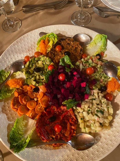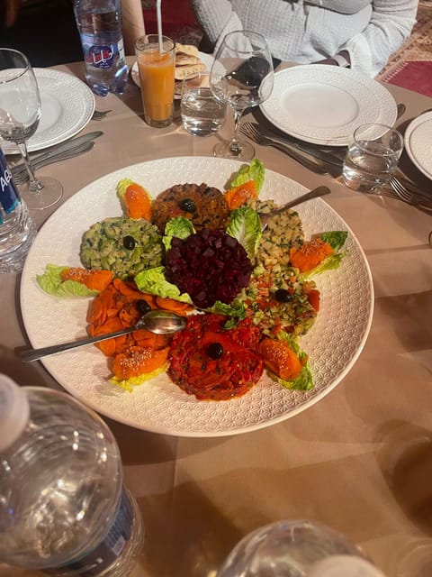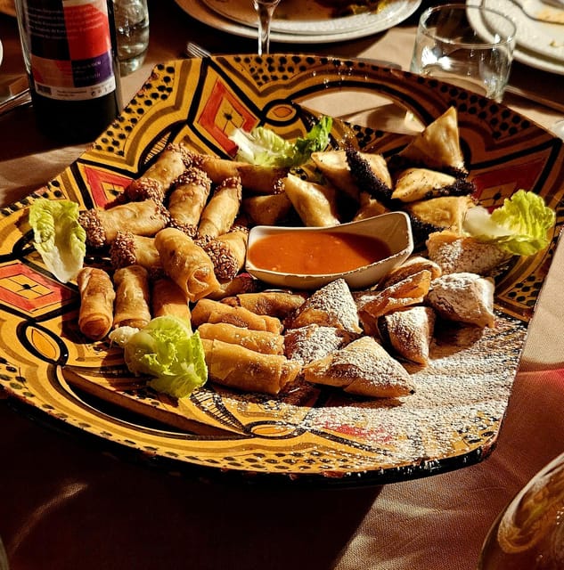 3. Auténtica gastronomía marroquí: disfrute de los sabores de Marruecos con un suntuoso banquete. Disfrute de la sopa Harira, los suculentos dátiles, un delicioso tajine marroquí, el cuscús con carne y una variedad de siete verduras diferentes. Termine su comida con deliciosos pasteles marroquíes y el icónico té de menta marroquí.