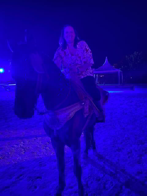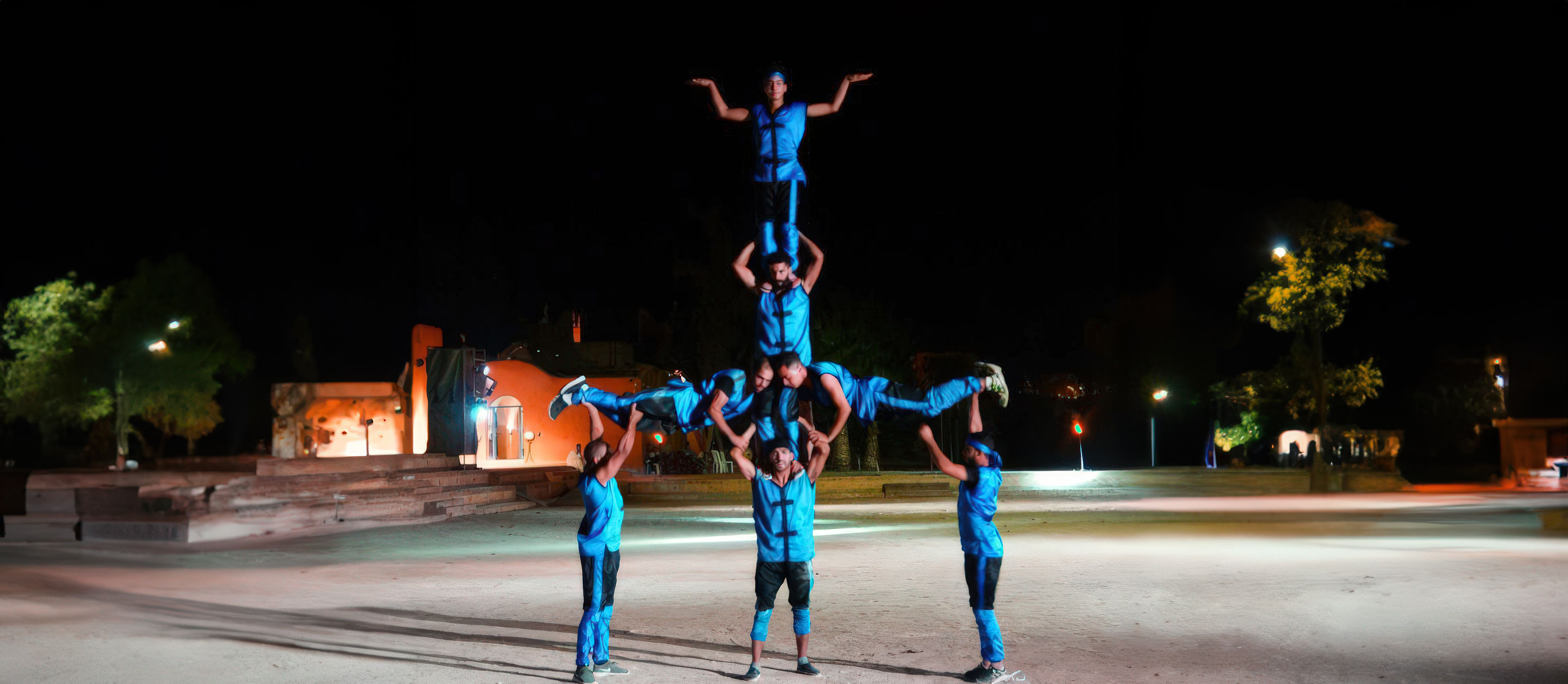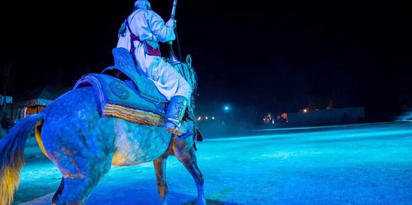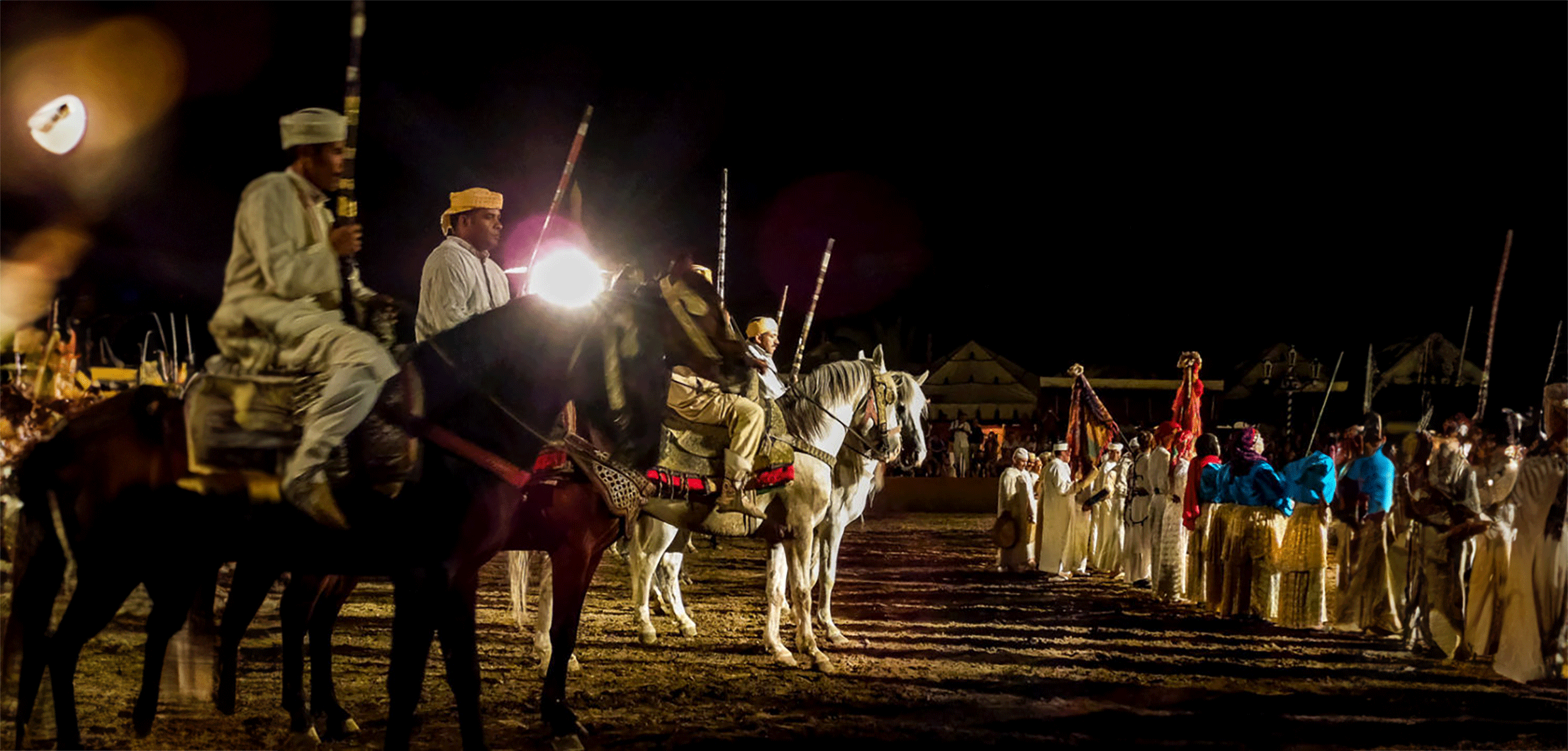 6. Fantasia Show: culmine la noche con el gran «Fantasia Show» en el estadio. Sé testigo de una deslumbrante muestra de equitación tradicional, que simboliza la destreza ecuestre bereber y crea el broche final perfecto para tu inmersiva experiencia marroquí.