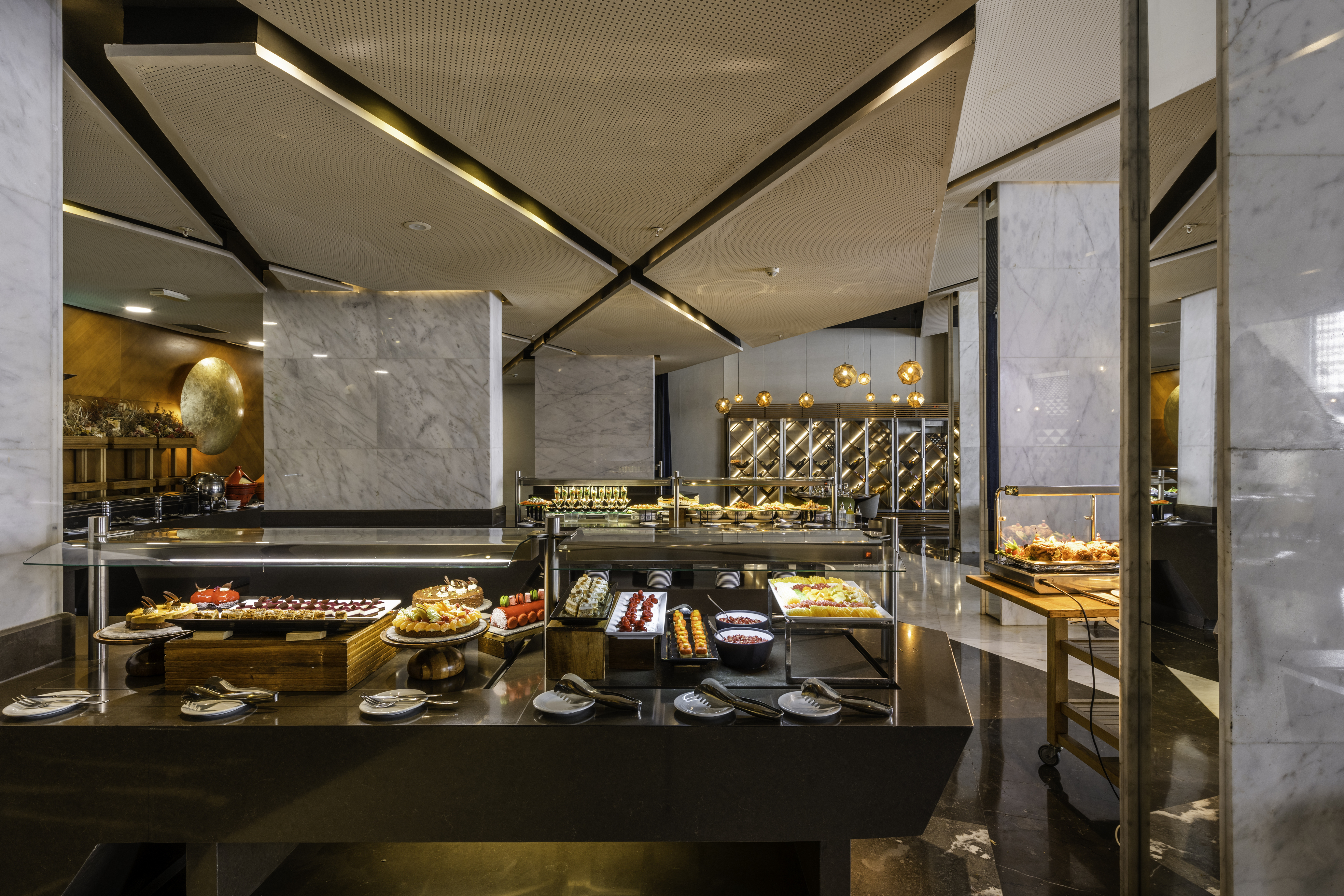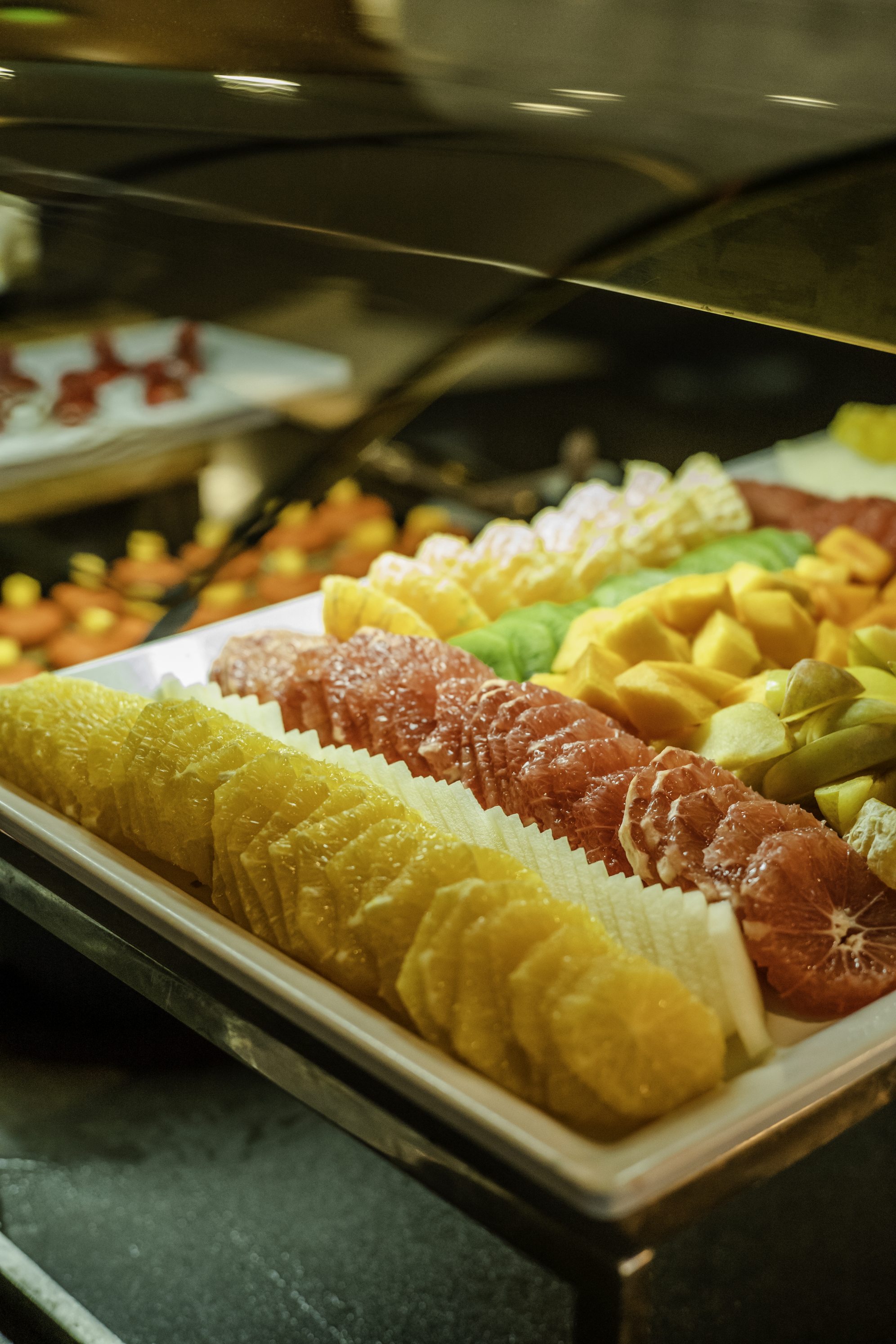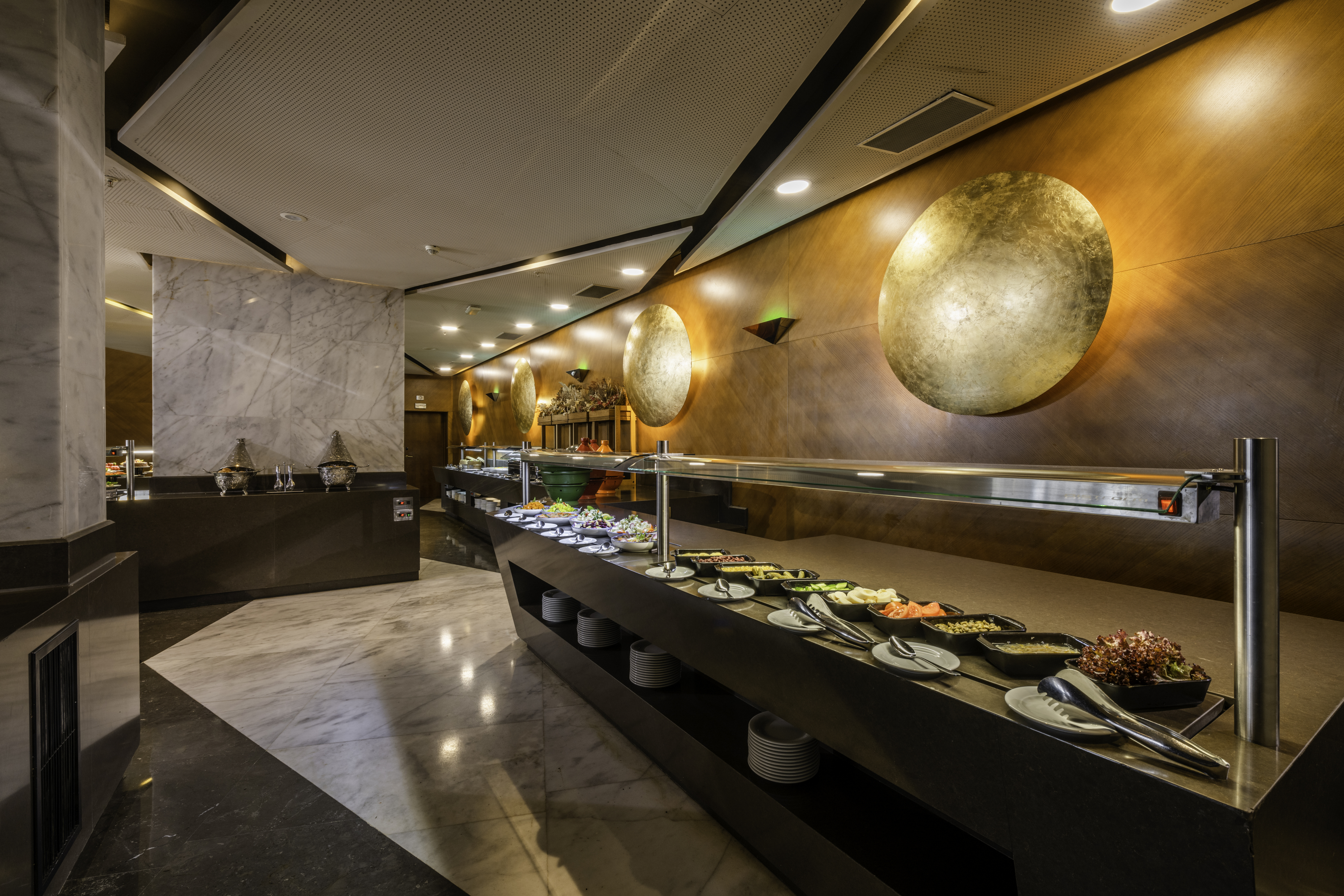 El desayuno buffet ofrece una propuesta gastronómica amplia, fresca y cuidadosamente seleccionada, donde conviven sabores locales e internacionales. Desde bollería recién horneada y panes artesanales hasta frutas de temporada perfectamente presentadas, cada detalle invita a disfrutar sin prisas. Los aromas del café recién hecho y los zumos naturales completan un ambiente que combina elegancia y calidez.