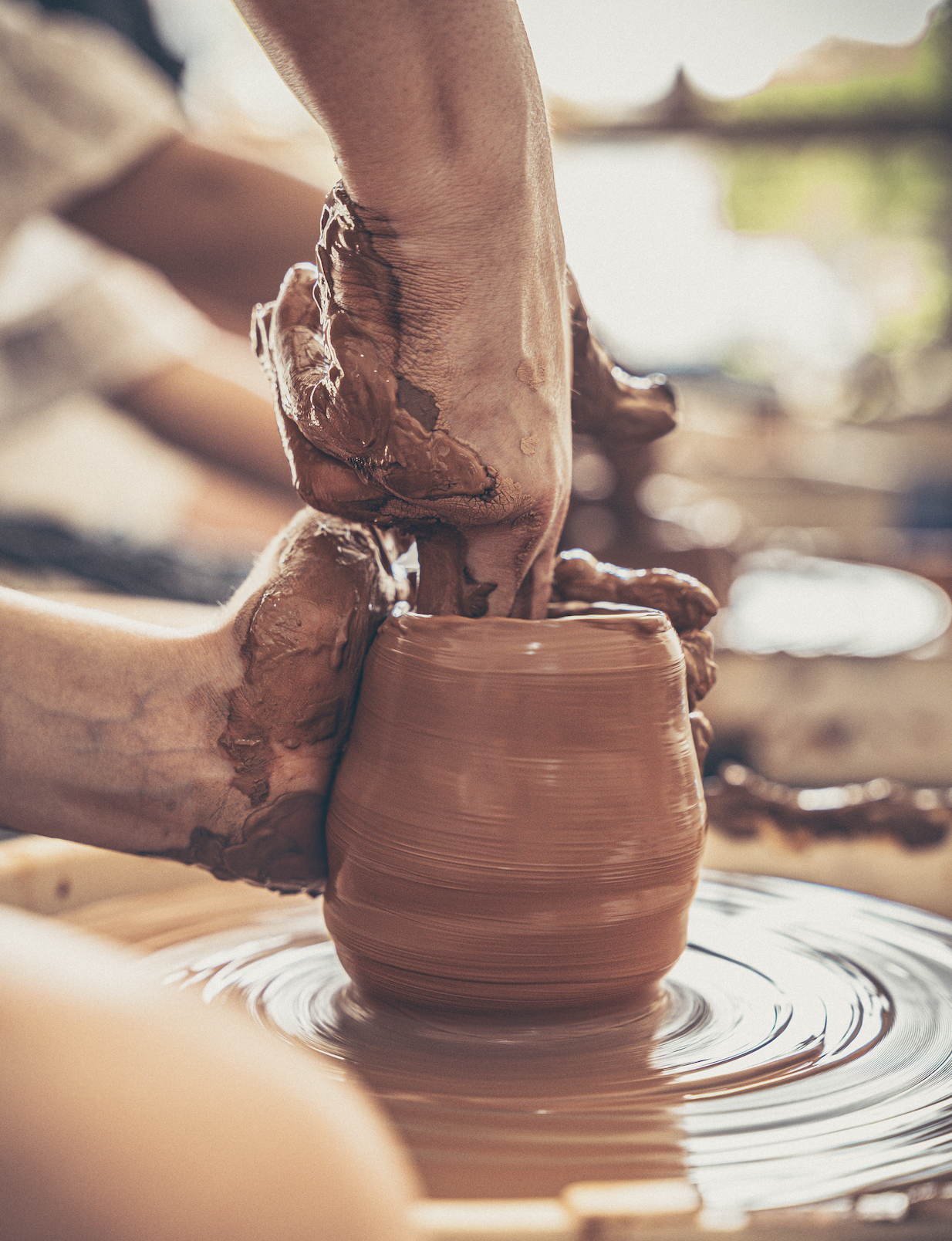 Crear algo hermoso con las manos proporciona una satisfacción inmediata y, a largo plazo, nutre el espíritu. La cerámica fomenta la confianza en uno mismo al tiempo que promueve la comunicación. Nuestros talleres, que a menudo se organizan en grupos pequeños, permiten intercambios enriquecedores, el intercambio de ideas y la interacción creativa entre los participantes.