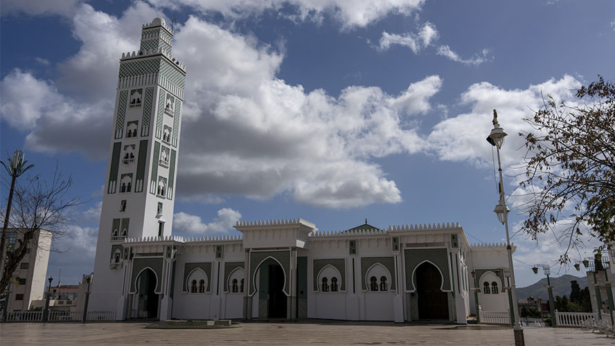 Durante el paseo por el laberinto de callejuelas de la medina, la Gran Mezquita de Tetuán aparece de pronto, sorprendiendo con sus volúmenes. Y eso que su elevado minarete, la mejor referencia para orientarse en esta zona de la ciudad, ya avisa de su presencia. Se trata de la mayor y más importante de las mezquitas de la ciudad. Se construyó a principios del siglo XIX por iniciativa del sultán Mulay Sliman y su estilo es de tipo alauita. Cuenta con un gran patio en forma de U, rodeado de arquerías que conducen hacia la sala de oración.