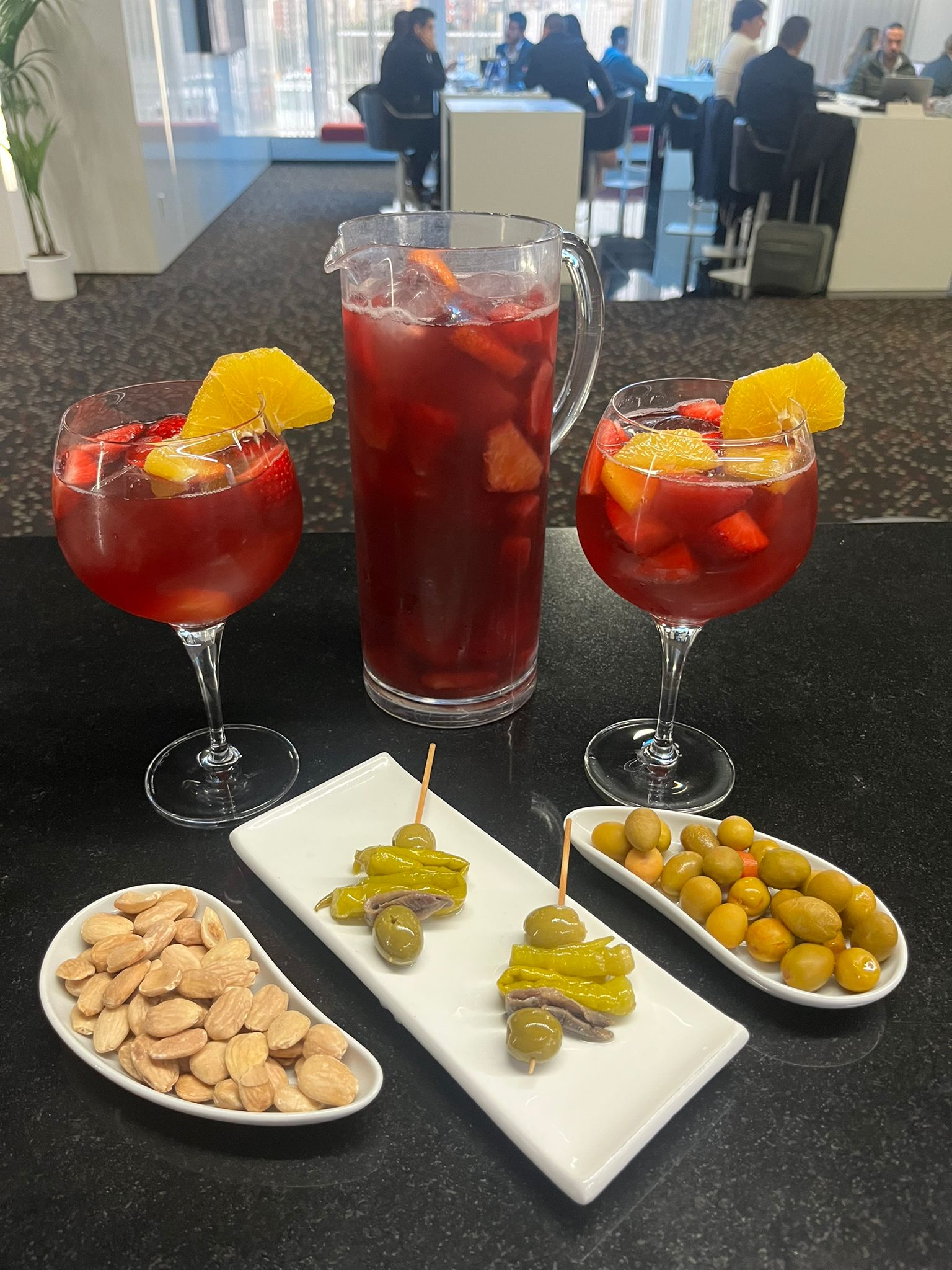 Escapa del ajetreo diario y disfruta de un delicioso aperitivo en el Orbital Bar del Barceló Sants, un lugar original y moderno perfecto para desconectar. Esta experiencia incluye una jarra de sangría, ideal para compartir entre dos, junto con un aperitivo compuesto por aceitunas, frutos secos y dos gildas (cada una con guindilla, dos olivas y una anchoa).
