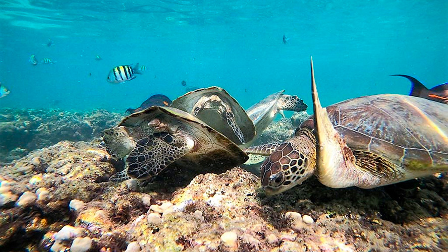 El secreto de este paraíso es el Mar Arábigo, que gracias a la cantidad de nutrientes con los que cuenta es un lugar de encuentro para muchas especies de ballenas, delfines, tiburones y las famosas tortugas que van allí a desovar.