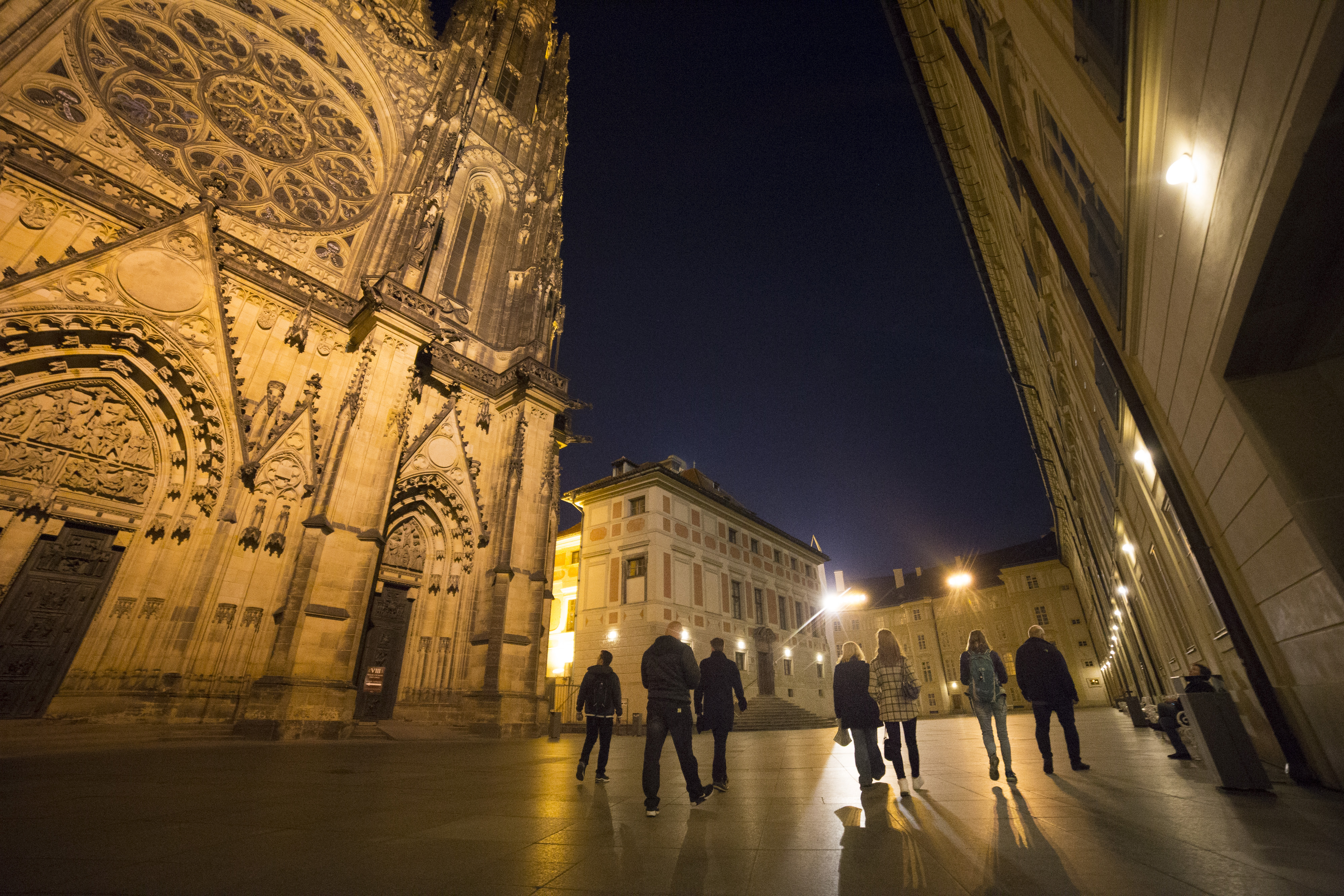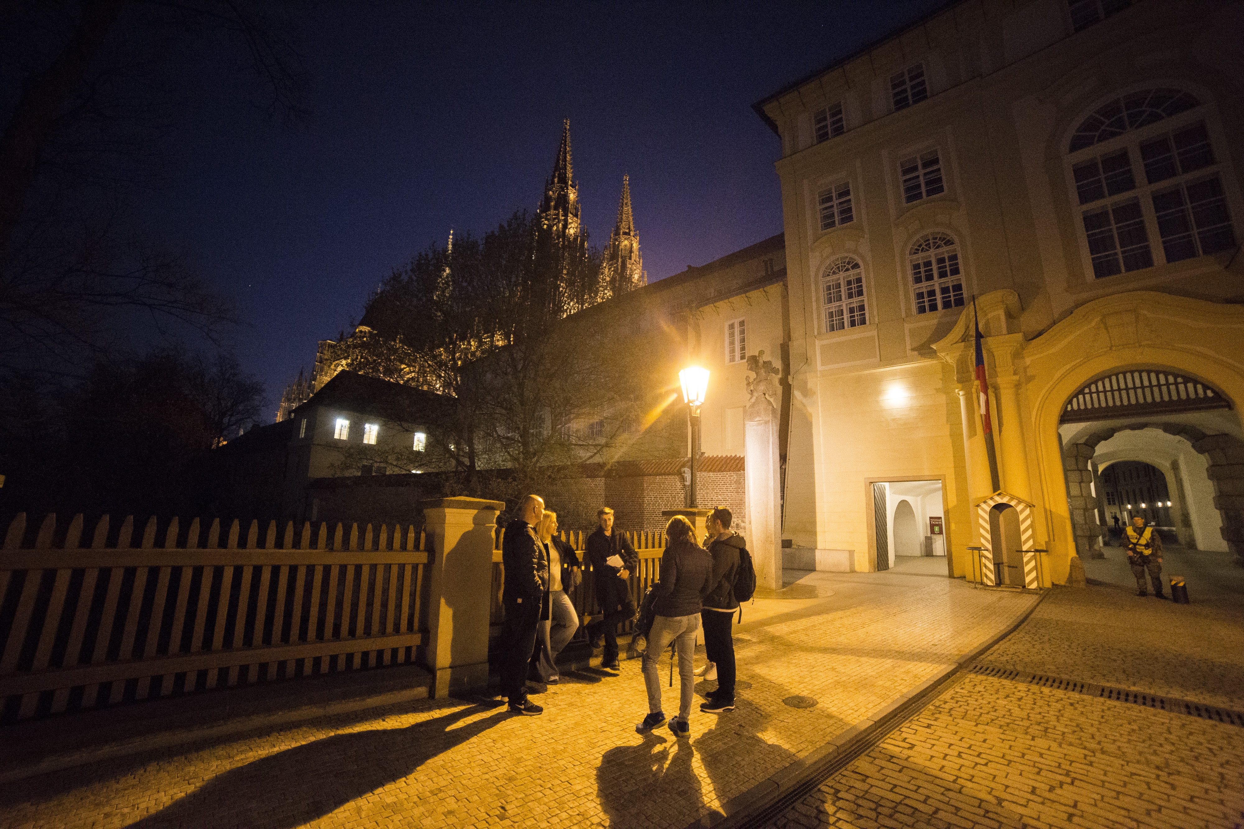 Cuando desaparezcan las multitudes y se haga de día, nuestros guías le llevarán desde el histórico casco antiguo de Praga, cruzando el río Moldava, hasta el complejo de castillos más grande del mundo. Explorará los monasterios, iglesias, palacios y monumentos del Castillo de Praga, siguiendo los pasos de reyes, emperadores, invasores y alquimistas. Visitará el monasterio donde se elabora la «Cerveza Sagrada», verá el palacio cuyos terrenos albergan el «Agujero del Infierno», aprenderá sobre el Emperador Alquimista de Praga y los científicos y magos que trajo a la ciudad.
