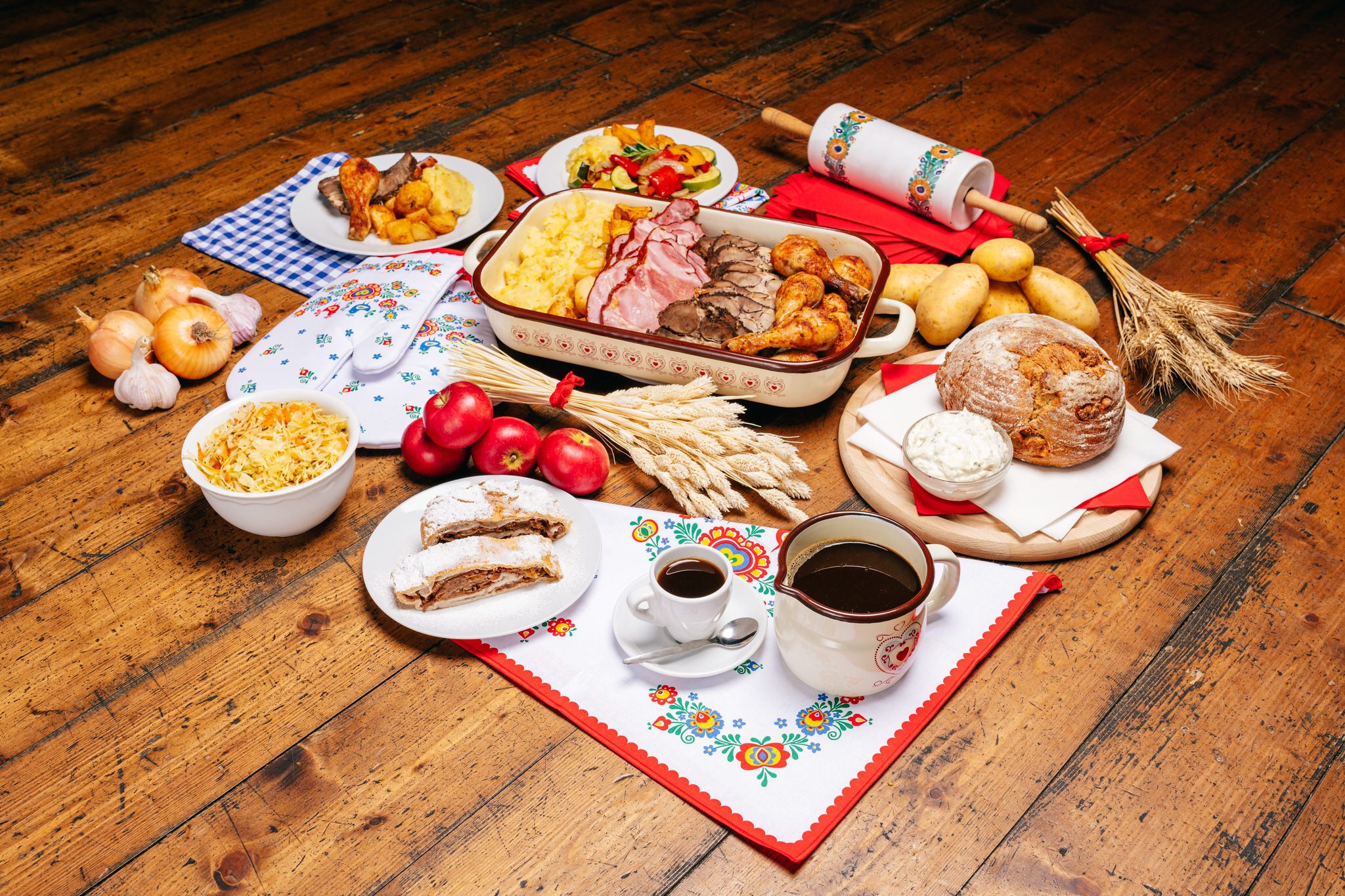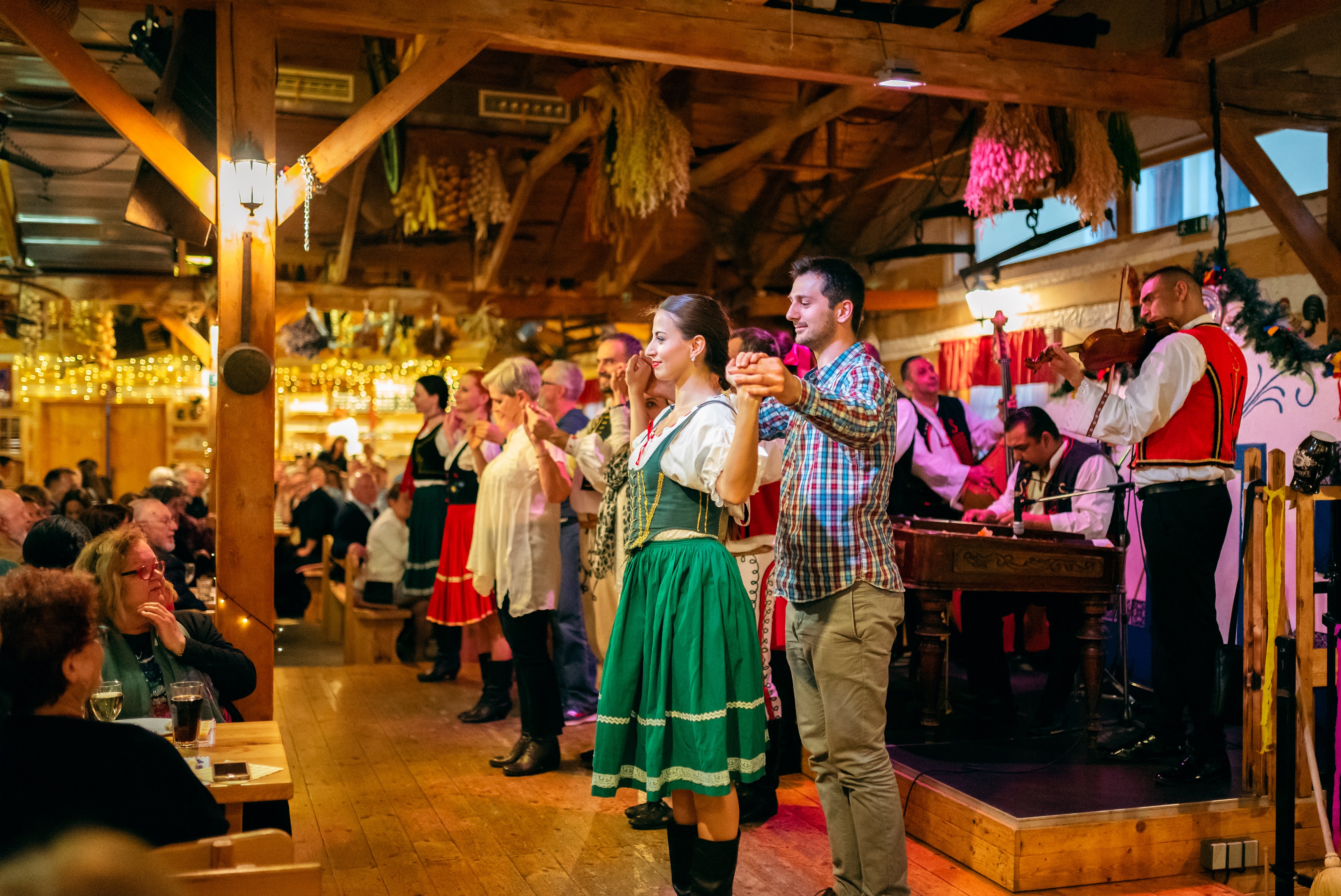 Antes del espectáculo os recibiremos con un brindis de aguamiel. Después de eso, disfrutará del espectáculo tradicional que incluye baile, canto y una degustación de la cocina tradicional checa. Escucharás muchas canciones antiguas de las regiones de Bohemia y Moravia e incluso podrás intentar cantar con nosotros. ¡También te enseñaremos a bailar algunos de los bailes nacionales! La mazurca, por ejemplo, es un éxito entre nuestros invitados. Por supuesto, bailar no es obligatorio, ¡así que solo si te apetece! No olvidemos la comida, tendrás la oportunidad de elegir entre nuestro rico menú, por ejemplo pato, pollo, cerdo, vegetariano, pollo halal, semikosher, trucha y más. La deliciosa comida se sirve en el centro de la mesa o en un buffet de jardín.