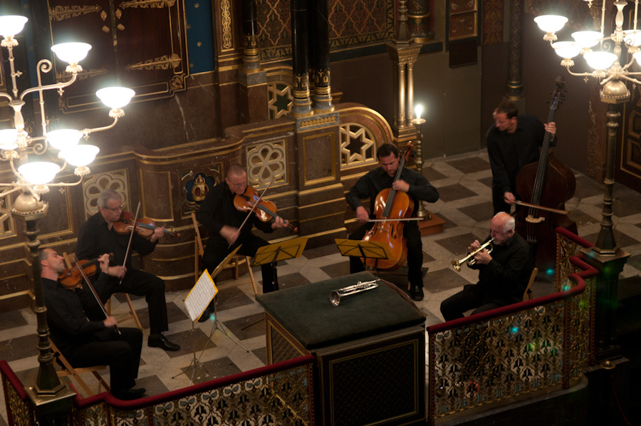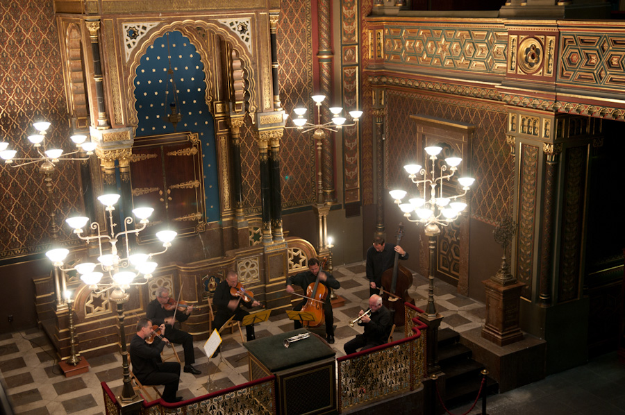 Por la noche, la Sinagoga Española se convierte en un escenario maravilloso para conciertos de música clásica.