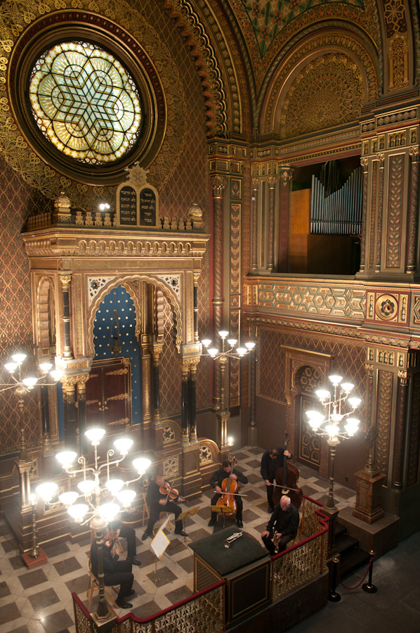 Así que tómate un momento de tu día de turismo por Praga para relajarte y disfrutar de la hermosa música, rodeado de obras de arte históricas en la Sinagoga Española.