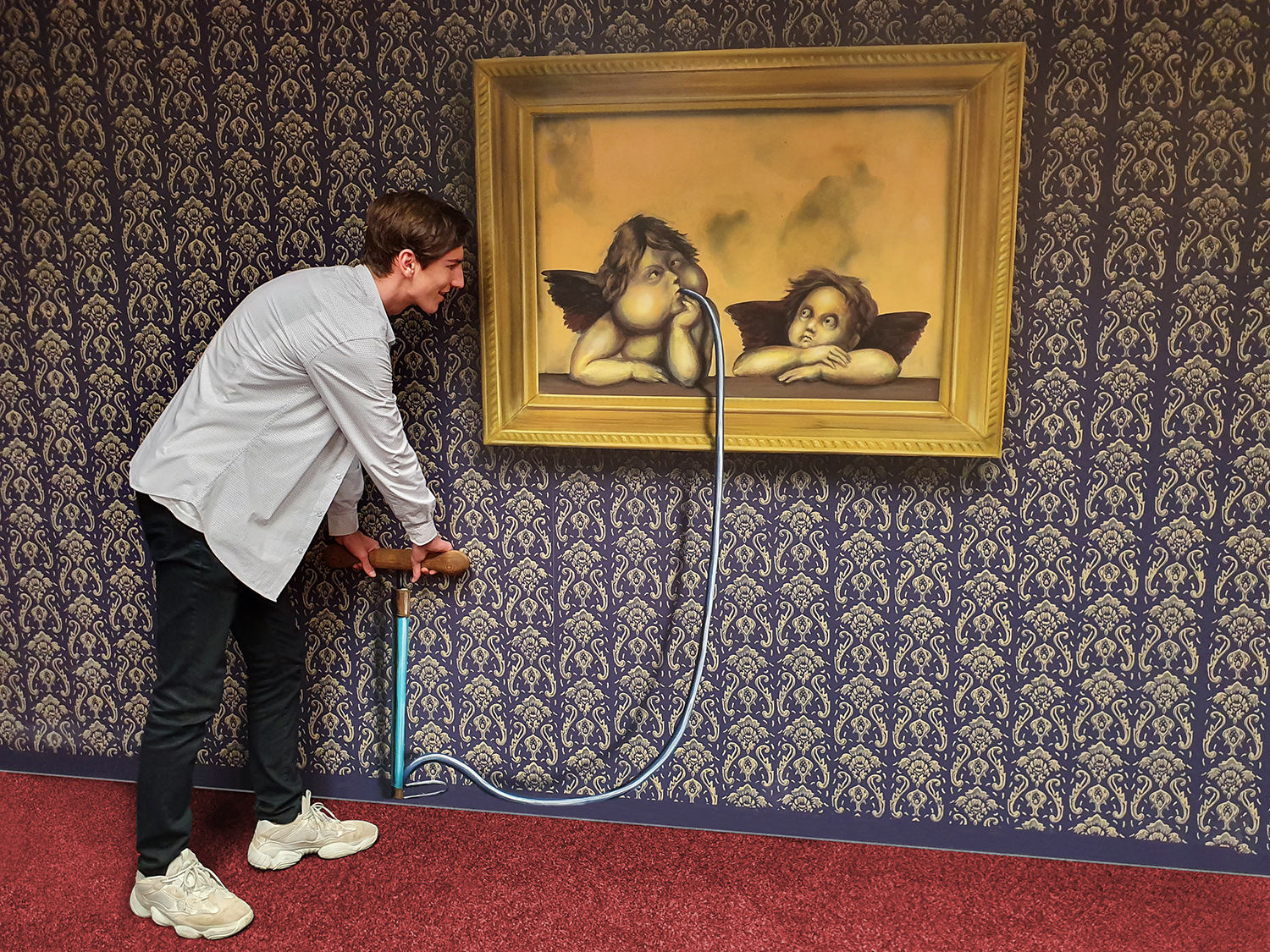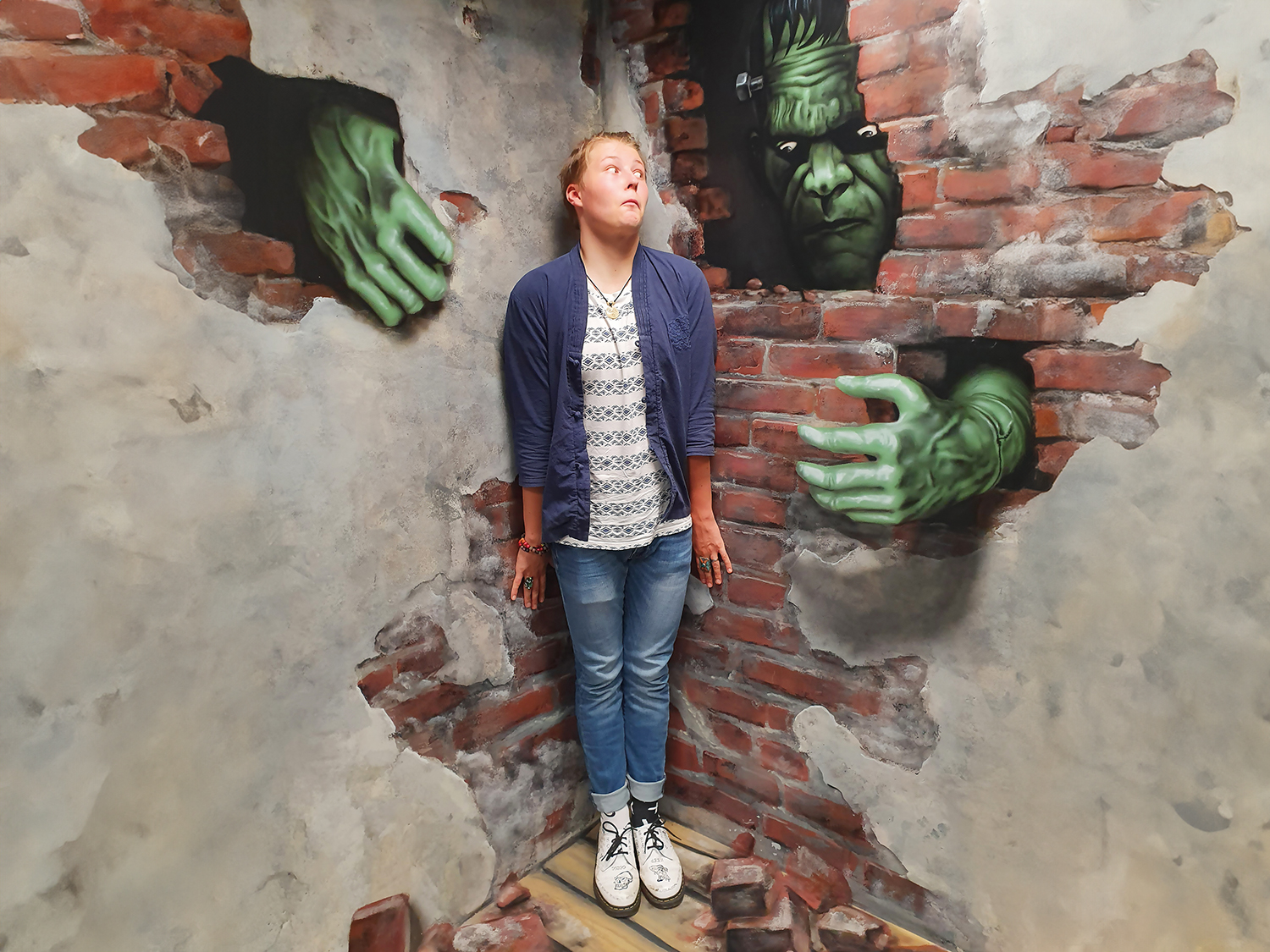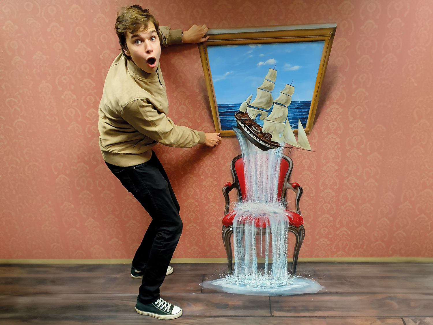 Explore instalaciones alucinantes y pinturas engañosas de gran formato que desafiarán su percepción y lo dejarán asombrado. Desde sentarte en una silla mágica que transforma tu tamaño hasta presenciar objetos que levitan, no faltan sorpresas. Captura fotos y vídeos divertidísimos mientras te pones la cabeza sobre la mesa o te encuentras con personajes famosos como King Kong, Charlie Chaplin y Albert Einstein.