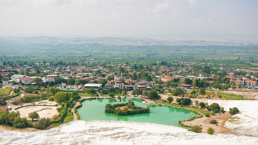 Se encuentran bajo la ciudad de Hierápolis, que durante la Antigüedad clásica vivió un gran esplendor gracias a las aguas termales que salen directamente de la tierra, a temperaturas de entre 35°C y 100°C.