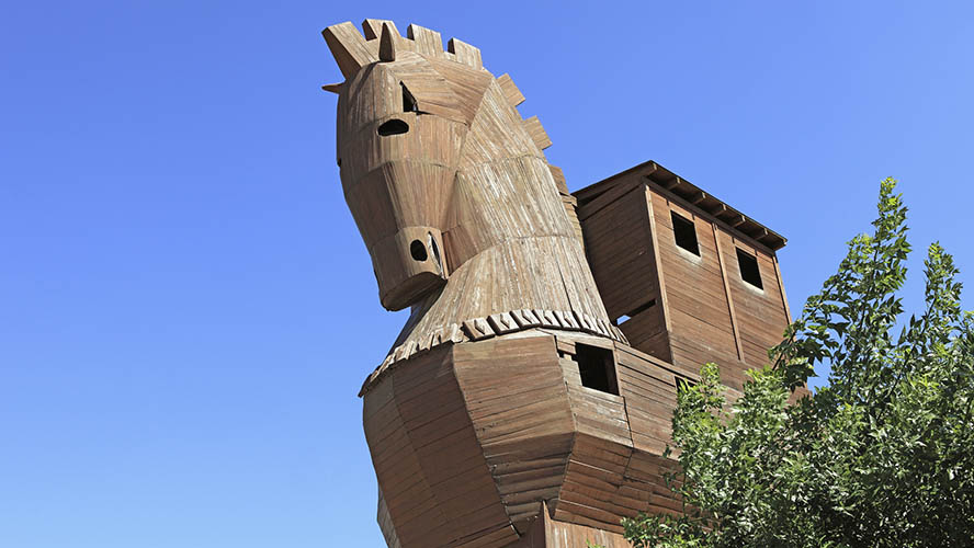 Lo que más llama la atención al entrar en el recinto arqueológico de Troya es una gran reproducción del célebre caballo de Troya. Según la leyenda, fue concebido por Ulises para introducir en él a un grupo de griegos dentro del recinto de Troya. Lógicamente, la mayoría de los visitantes de Troya se suben a la réplica del caballo para asomarse a sus ventanas y ser inmortalizados en una fotografía desde el exterior. En el malecón de la vecina Canakkale, también se puede ver el caballo de madera que se utilizó en la película ‘Troya’ (2004), dirigida por Wolfgang Petersen y protagonizada por Brad Pitt. Esta segunda réplica fue un regalo de la productora de la película, Warner Bros Pictures, a la ciudad y hoy se ha convertido en un icono turístico de Canakkale.