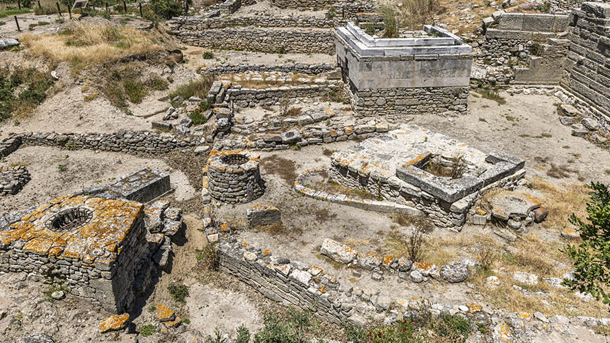 Es obligatorio contemplar el templo de Atenea, que fue destruido y reconstruido en varias ocasiones. De hecho, los romanos destruyeron buena parte de la acrópolis para hacer un templo digno de Atenea Ilias. También hay que visitar el odeón romano, el bouleterión y las termas, además del nuevo Museo de Troya, situado a las afueras de la cercana aldea de Tevfikiye.