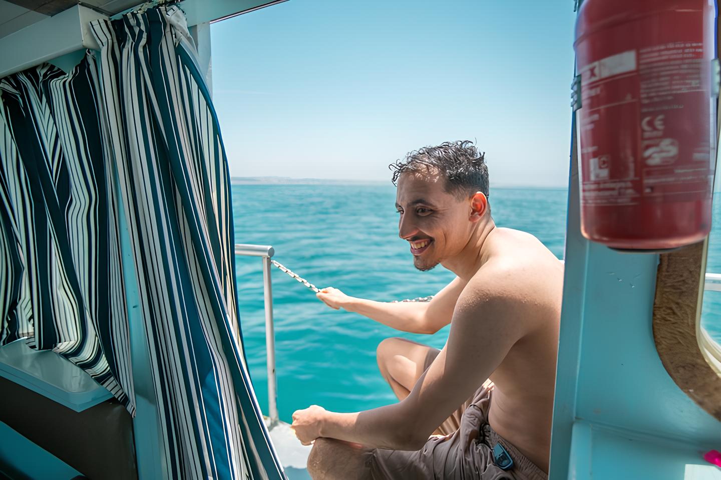 Baignade rafraîchissante : après avoir pêché, plongez dans les eaux rafraîchissantes pour vous baigner. Descendez du bateau pour une baignade revitalisante ou prélassez-vous au soleil sur le pont en profitant des chauds rayons du soleil marocain.