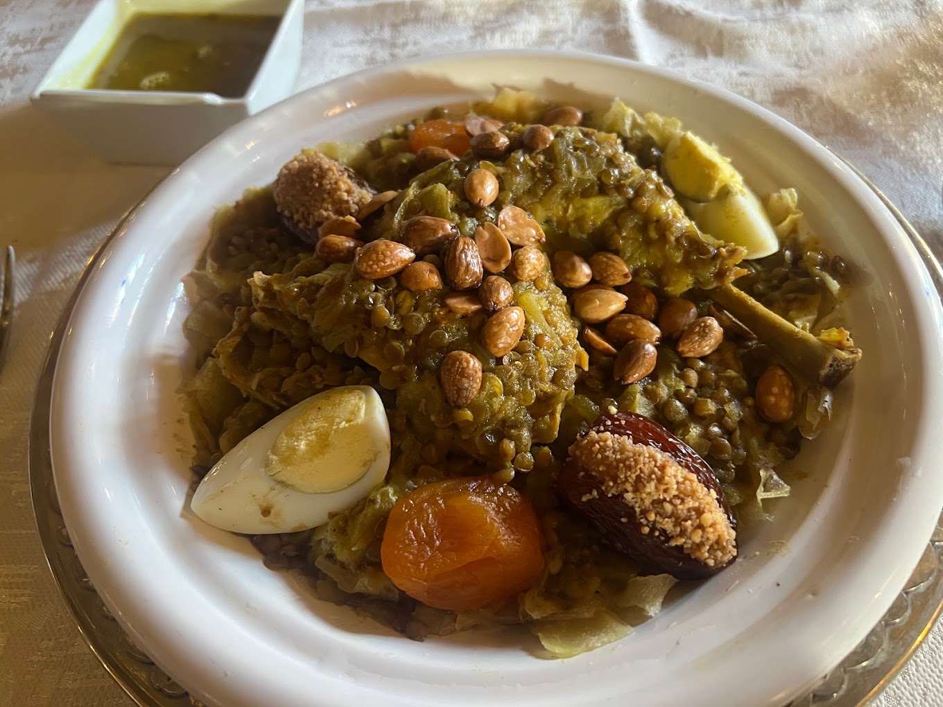 Il existe des options de menu, qu'il s'agisse de poulet, de bœuf, de poisson ou végétarien, y compris un assortiment marocain composé de Taktouka et de Zaalouk. Les boissons ne sont pas incluses.