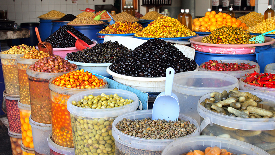 Vous y trouverez des oranges, des pastèques, des melons, des légumes et des tresses d’oignons, ainsi qu’une grande variété de fruits secs : figues, amandes, cacahuètes, etc. Le plus typique est d’acheter des épices, en particulier du safran, de l’origan et du cumin, ainsi que les mélanges utilisés pour préparer les typiques brochettes marocaines.