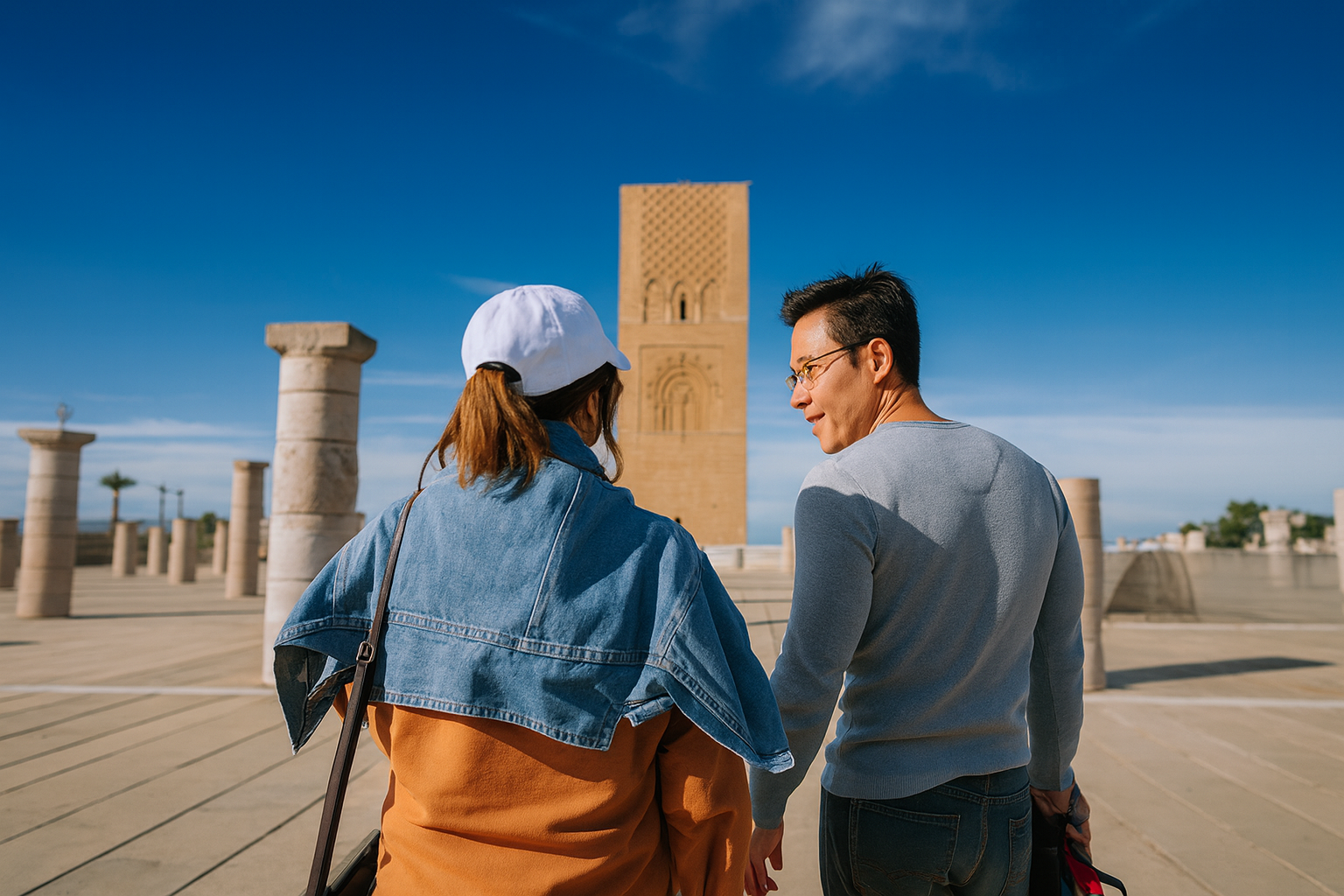 Vous visiterez les monuments emblématiques de la ville, dont la majestueuse Tour Hassan et le Mausolée Mohammed V, avant de plonger dans l’atmosphère pittoresque de la Kasbah des Oudayas.