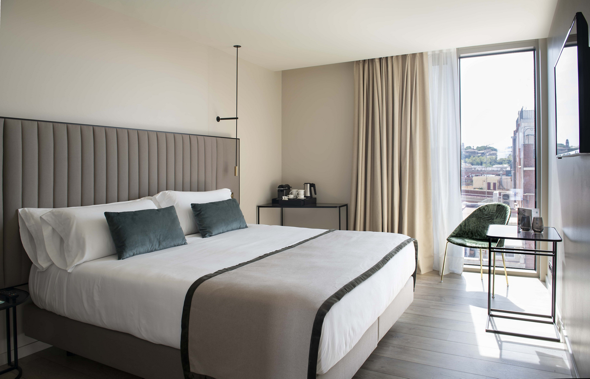 Algunos de los bares y restaurantes con mirador más icónicos se encuentran sobre dos joyas de Gaudí: Casa Batlló y Casa Milà (La Pedrera), pero también están los que ofrecen los hoteles más modernos y de tendencia. Uno de los mejores lo encontrarás en el rooftop del hotel Barceló Raval ofrece una de las vistas panorámicas más impresionantes de Barcelona. Situado en la planta 11, este espacio exclusivo cuenta con una terraza 360º desde la que se puede contemplar toda la ciudad, desde el mar hasta Montjuïc. Ideal para disfrutar de una copa al atardecer o relajarse en un ambiente cosmopolita, su atmósfera moderna y su cuidada selección musical lo convierten en un punto de encuentro imprescindible en el corazón del Raval.