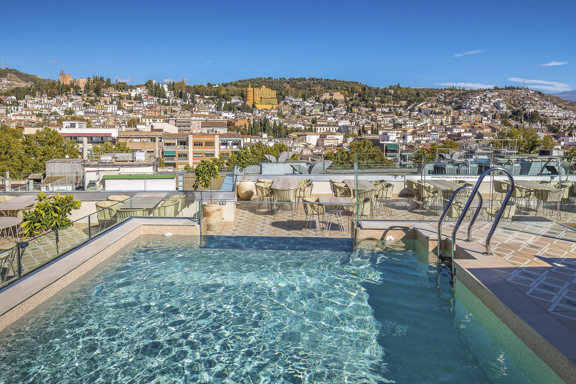 Si quieres elevar tu experiencia al mayor nivel, otra opción es el hotel Palacio Gran Vía, a Royal Hideaway Hotel, un hotel de 5 estrellas GL situado en uno de los edificios más emblemáticos de la ciudad de La Alhambra: la antigua sede de la banca Rodríguez-Acosta. Construido a principios del siglo XX, su interior atesora elementos arquitectónicos de gran valor, como artesonados de estilo neomudéjar, suelos de teselas, frescos, ornatos modernistas o incluso las cajas fuertes originales del banco. ¿Lo mejor? Su impresionante terraza con vistas directas a la Alhambra y a la Catedral.